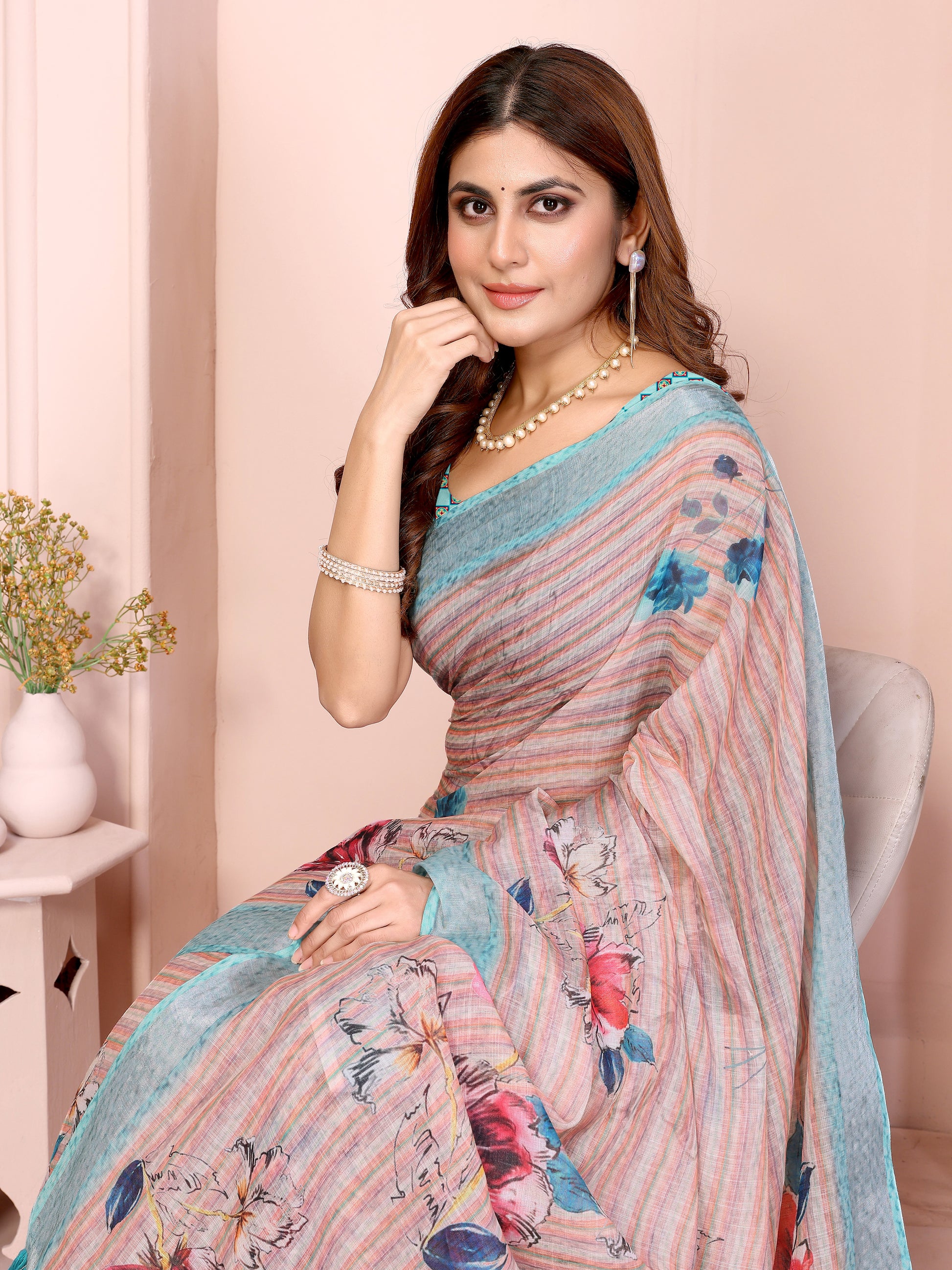 DESCRIPTION : Made from soft and breathable linen cotton, this saree combines everyday